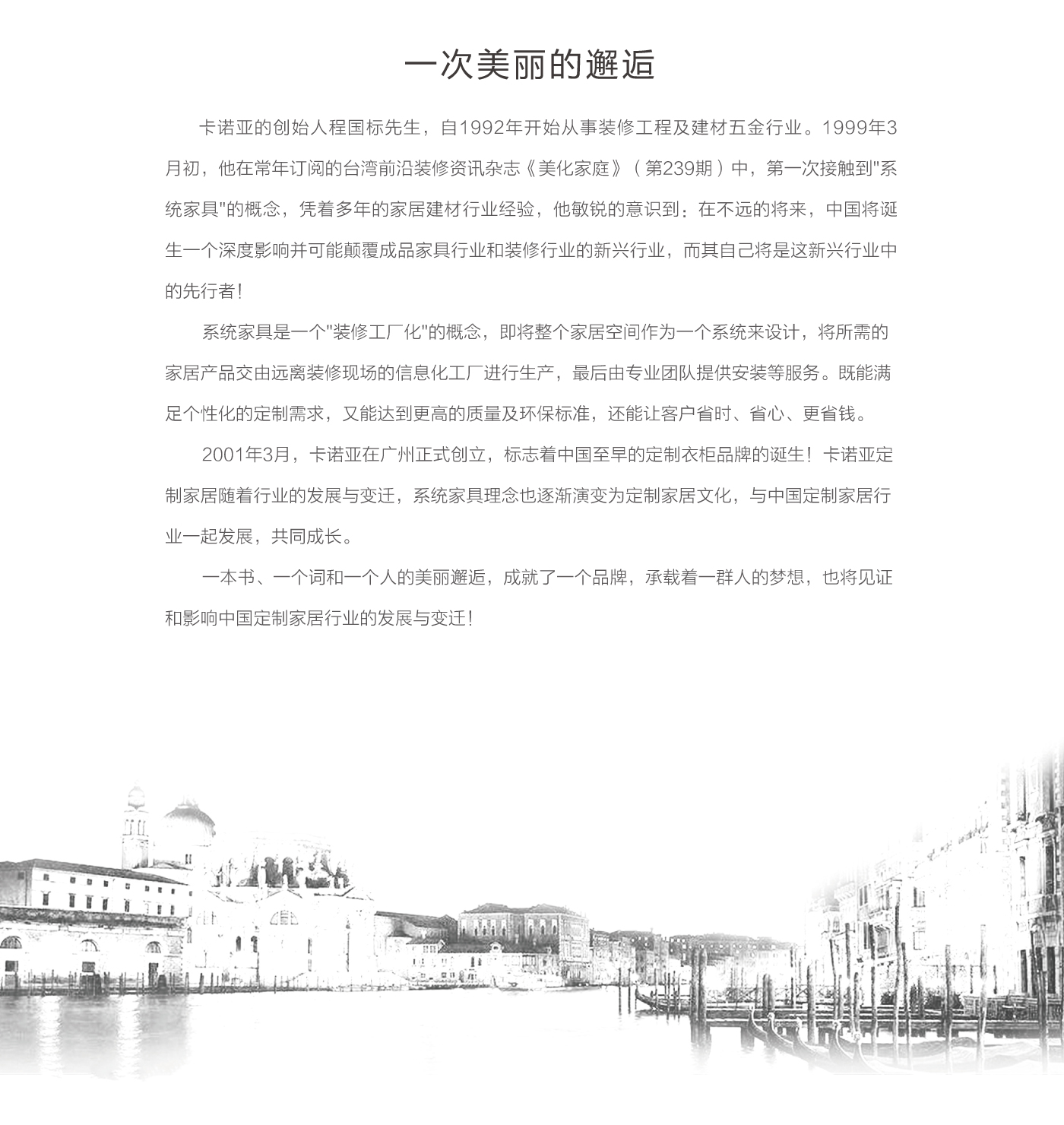 卡諾亞創立于2001年,是集研發、設計、生產和服務于一體的高新技術企業。旗下擁有居魔方整裝、卡諾亞高端定制、羅亞全屋定制三大品牌。