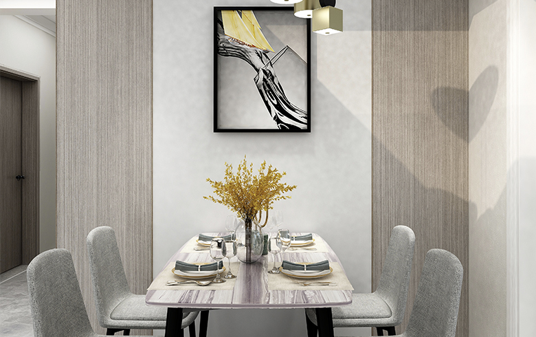 從玄關到客廳,再至餐廳,廚房,臥房,書房,空間主角都是灰色,白色,溫馨的銀絲木與珍珠白的柜體突顯優雅又帶來溫馨的家氛圍。