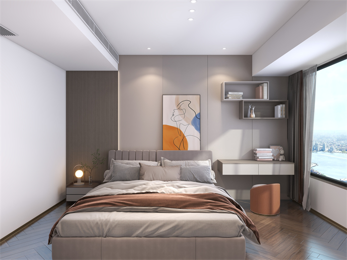作品簡介:設計方案是個現代極簡的大平層,門板主材以水性漆為主,客餐廳是個大橫廳。光線很好,柜門和護墻采用了深色系。使空間大氣而不失沉穩。設計理念:用有限的空間,做無限的設計。整家視界 全案生活|第六屆卡諾亞整家設計精英聯賽