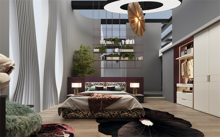 逐夢系列設計靈感上,源于當代精英女性對精致生活的追求,代表著公司白領“忙在臥室”的優雅和獨立。設計手法上,整個臥室空間按一體化多功能打造,滿足辦公、休息、放松、娛樂的需求。