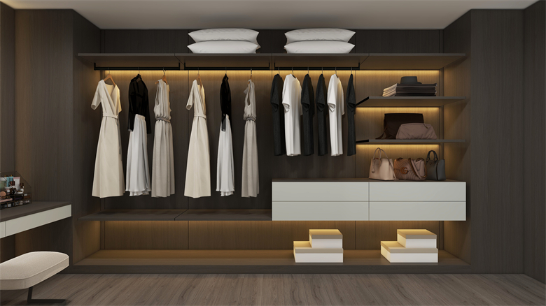 衣帽間以極簡疏闊布局,楓沙木、生椰灰與榛果咖搭配,讓衣物、鞋子被溫柔對待,挑選穿搭成了 “欣賞小確幸” 的過程。羅亞全屋定制用 C 調(diào)系列證明:好的定制讓家與生活同頻,其 “懂設(shè)計,有顏值” 的背后,是對年輕人生活態(tài)度的尊重與品質(zhì)的堅守。