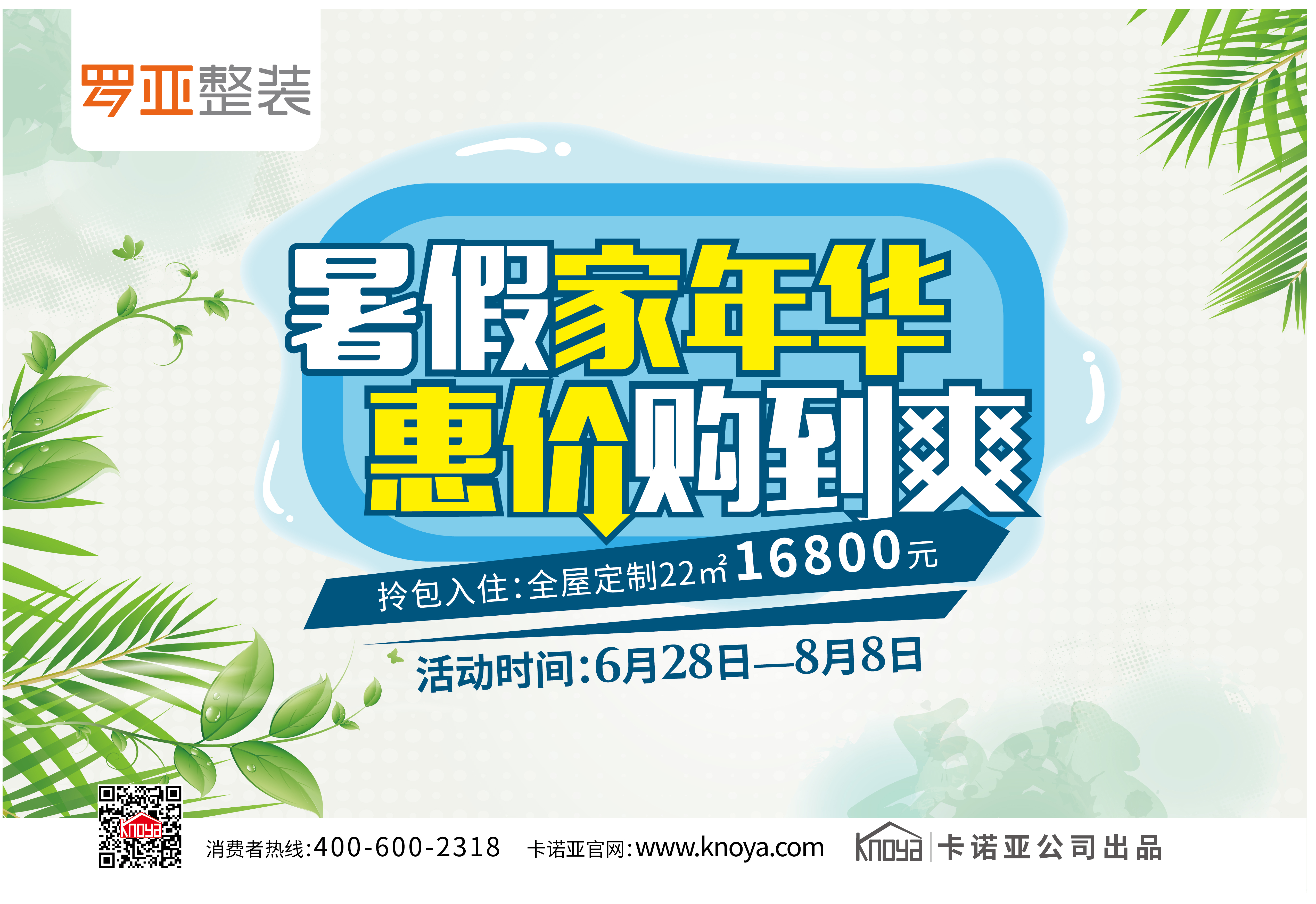 仲夏來襲,烈日炎炎,也是家居裝修的旺季。這個夏天,羅亞整裝的清爽套餐為你解決所有的家裝煩惱,6月28日-8月8日,卡諾亞定制家居旗下的羅亞整裝品牌,針對當前廣受青睞的一站式拎包入住家裝服務,誠意推出“暑假家年華,惠價購到爽”整裝瘋搶季讓利活動,現代全屋套餐¥16800、簡歐全屋套餐¥22800、櫥柜套餐¥4680三大套餐鉅惠來襲,讓消費者實現一家購齊、一省到底。